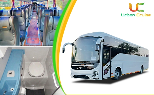 Looking for a bus with washroom in Delhi Urban Cruise makes travel comfortable with modern buses perfect for family trips, weddings, corporate travel, and pilgrimage tours. Our fleet includes Volvo, Eicher, Ashok Leyland, Tata, and Bharat Benz buses equipped with washroom/toilet facilities for convenience during the trip especially suitable for adults, children, and ladies.