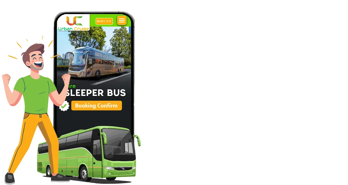 Each bus have 2+1 sleeper seating layout with modern amenities, including comfortable berths, individual AC vents, ample luggage space, music system, reading lights, USB charging points, and a silent cabin with privacy curtains. Our trained and experienced drivers, along with GPS-enabled routes, ensure smooth and timely travel. Urban Cruise offers sleeper bus on rent in 21 cities, including Delhi, Noida, Ghaziabad, Faridabad, Gurgaon, etc.